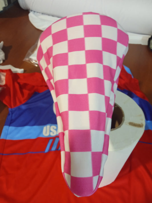 BMX Bicycle Seat Cover Vintage Style Van Max Bike Saddle Cover Old School Checked Pink White