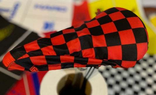 BMX Bicycle Seat Cover Vintage Style Van Max Bike Saddle Cover Old School Checked Black and Red